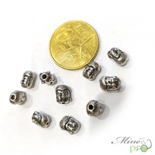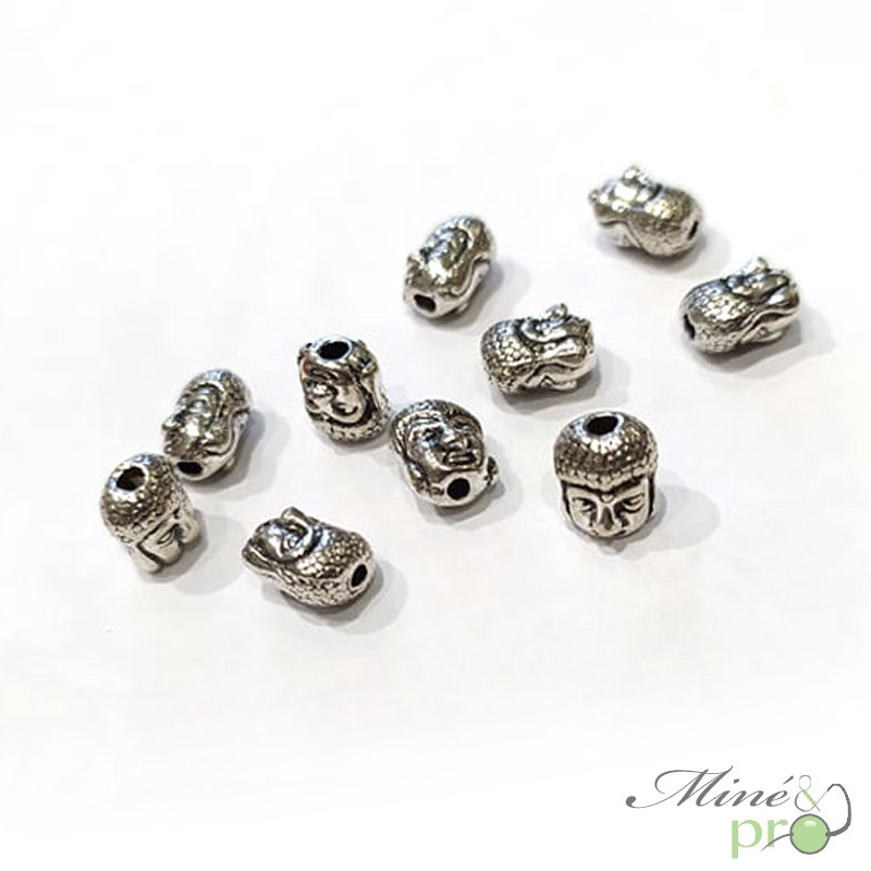 Lot de 10 breloques en métal argenté (sans Nickel) en forme de petite tête de Bouddha pour la création de bijoux.