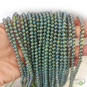 Rang de perles complet en Aqua Aura Quartz AAen 4mm pour la création de bracelets et bijoux. Perles en pierres naturelles avec un traitement en Laboratoire (pulvérisation de fumée d'or et de titane sur un Cristal de roche préalablement chauffé).